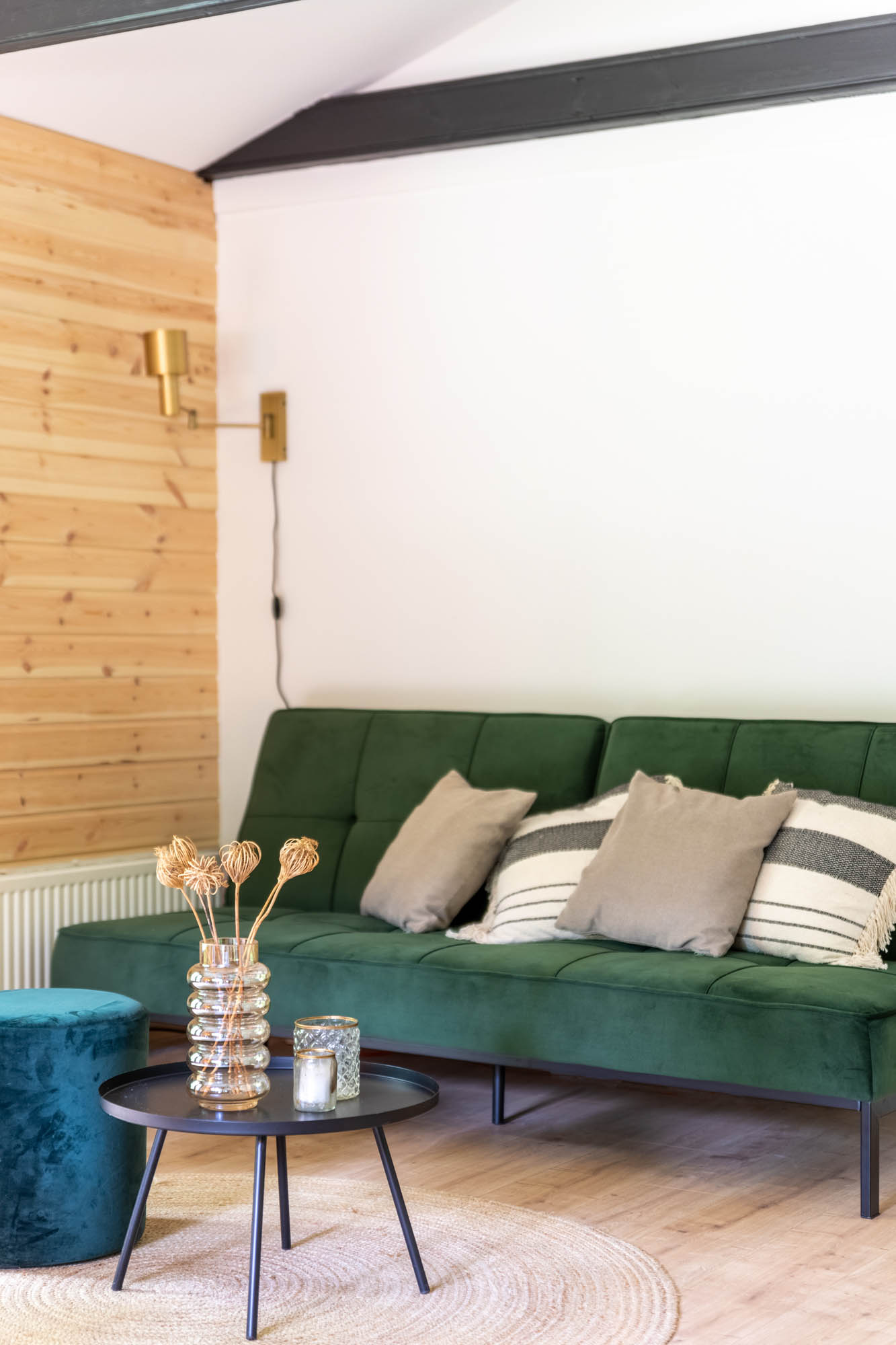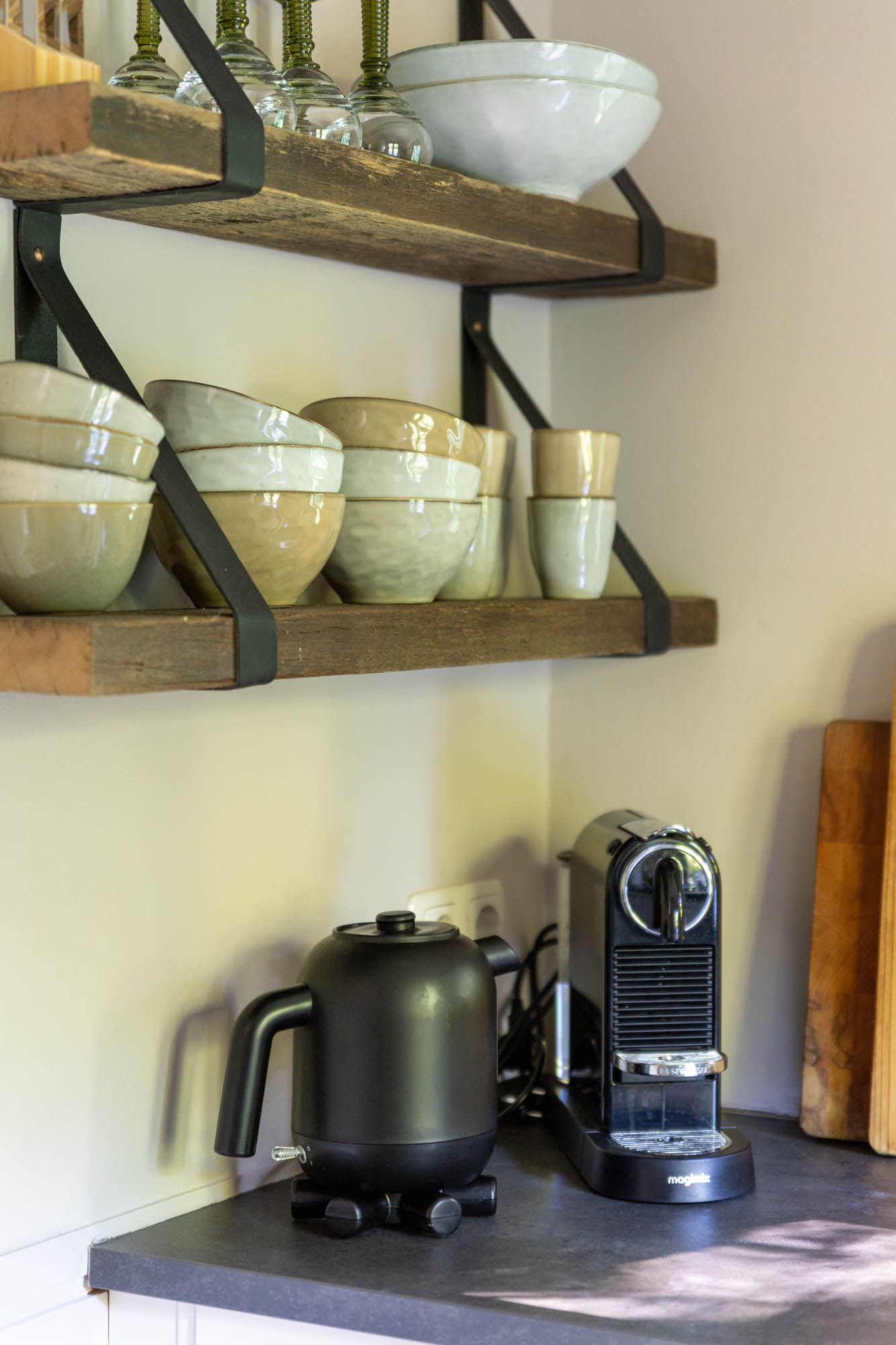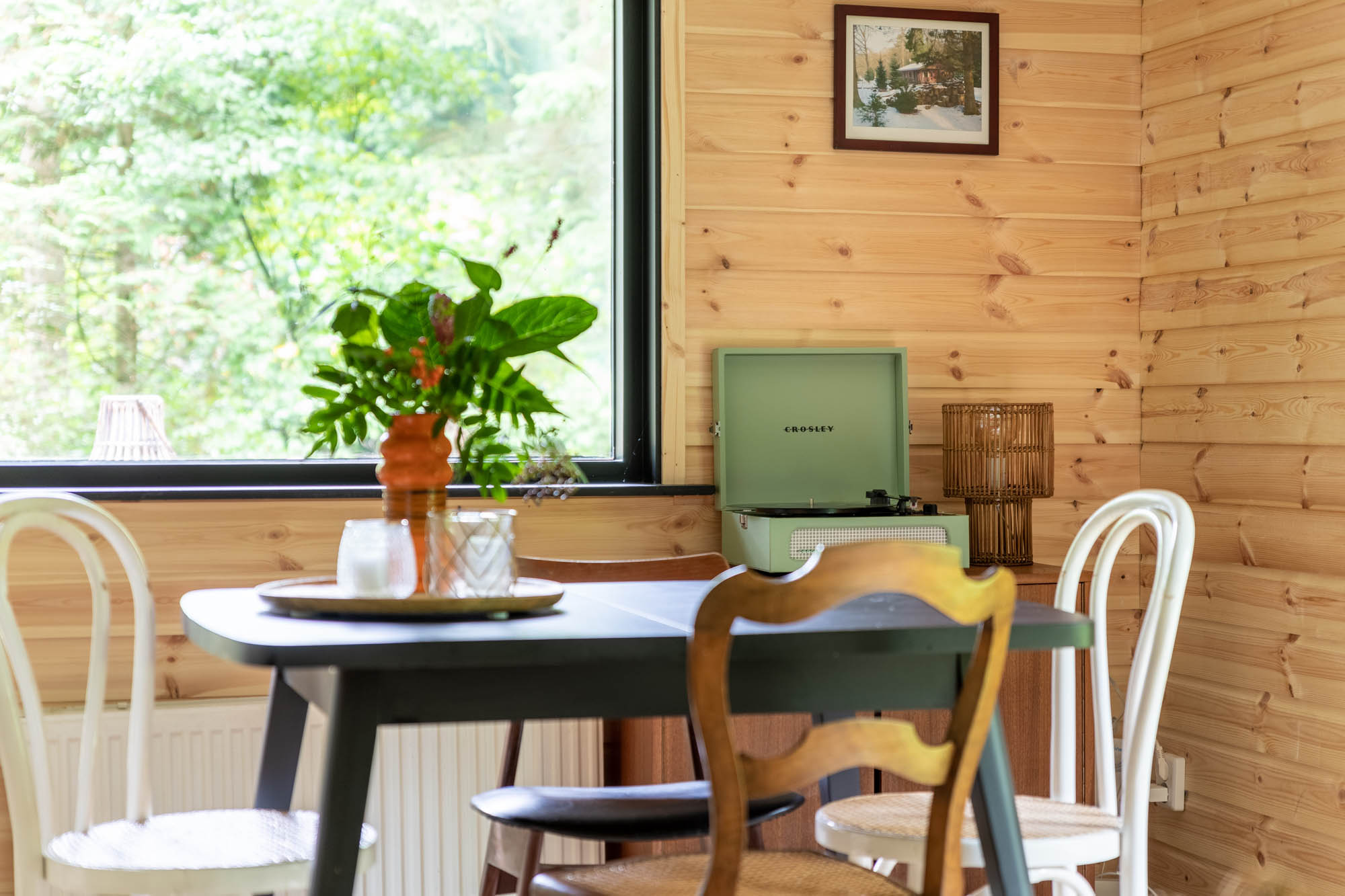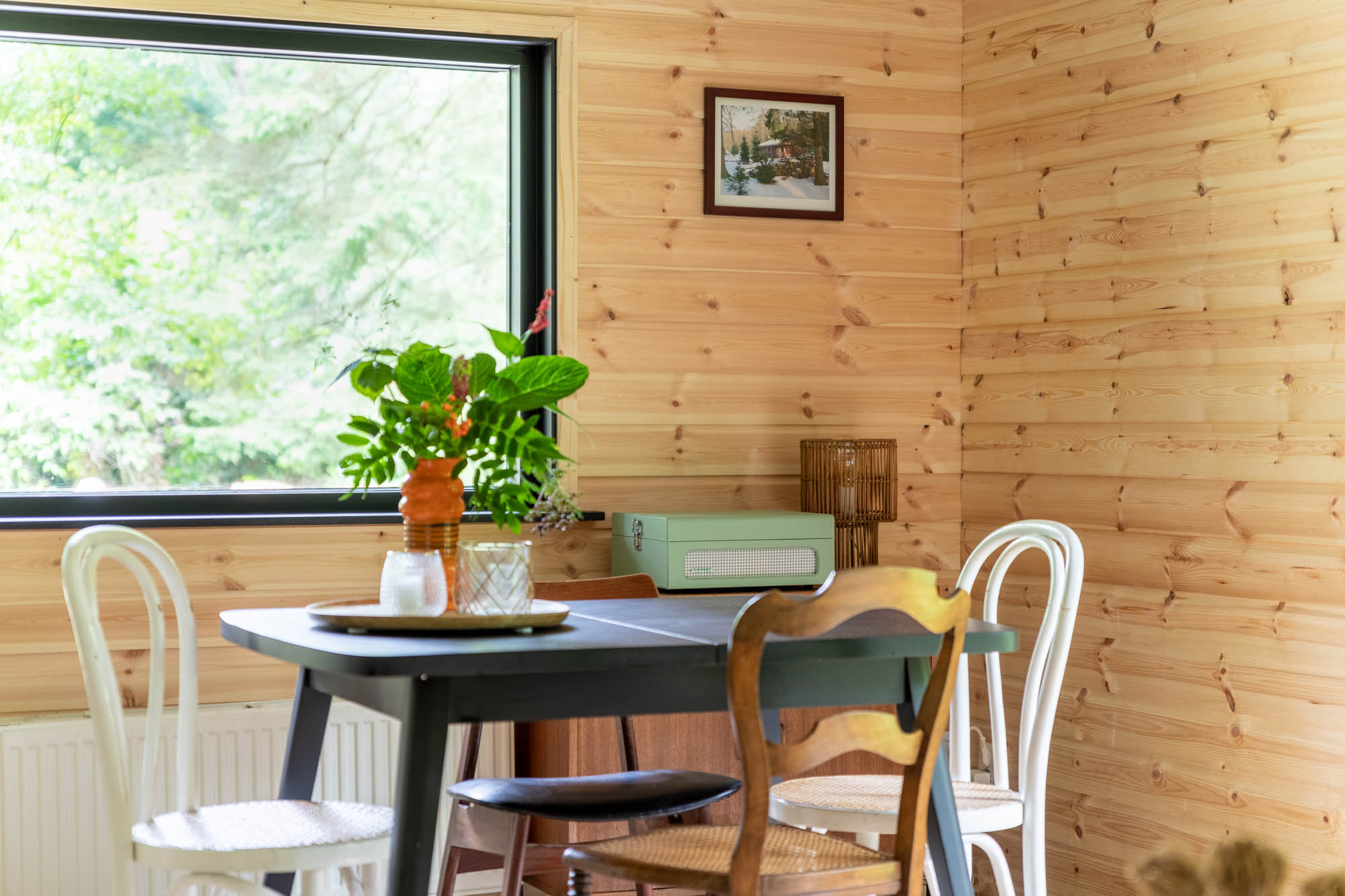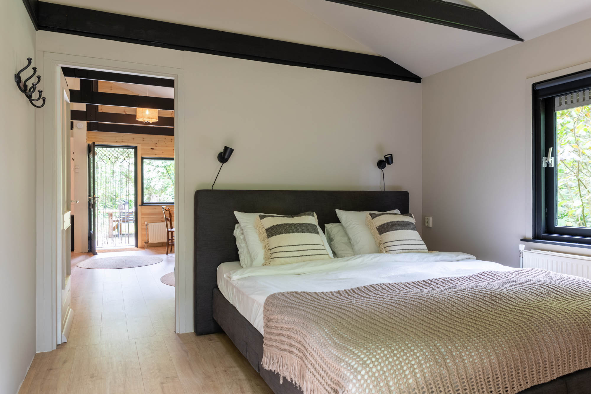 Hoewel je midden in het bos verblijft, hoef je niets in te leveren op comfort. Het huisje is sfeervol ingericht en biedt alles wat je nodig hebt voor een ontspannen verblijf. De bedden zijn zacht en uitnodigend, de keuken is goed uitgerust – inclusief een vaatwasser en een Nespresso-apparaat – en de badkamer is sfeervol en voorzien van een inloopdouche met rainshower.
