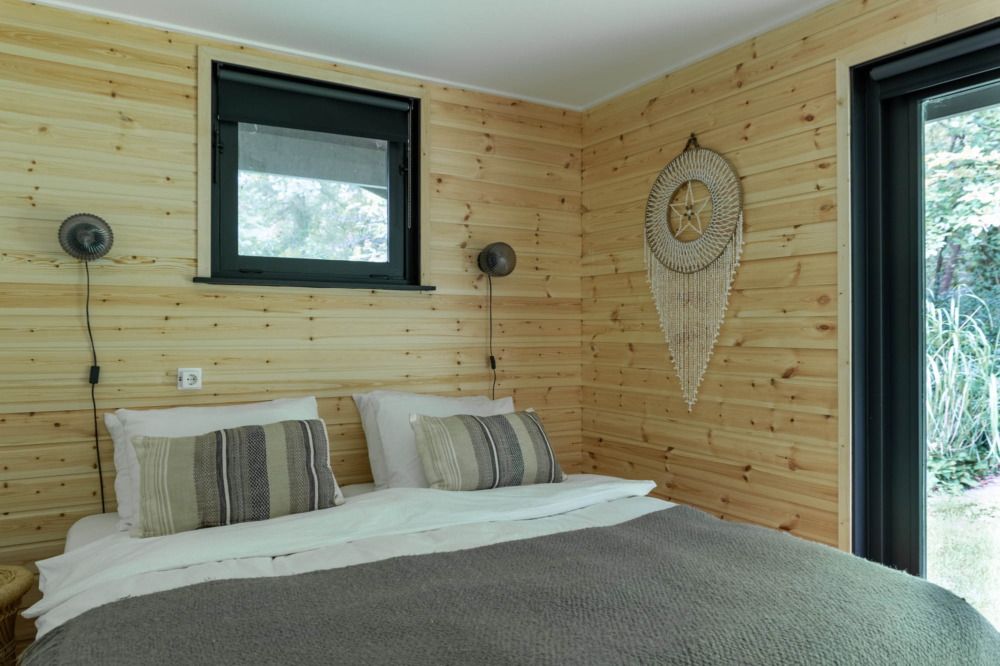 Of je nu verlangt naar rust of juist naar avontuur, hier komt alles moeiteloos samen. In de ochtend kun je de dag beginnen met een warme kop koffie op het terras, terwijl het bos langzaam ontwaakt. Misschien hoor je een specht kloppen of zie je een ree tussen de bomen. Overdag kun je wandelen over slingerende bospaden, fietsen door uitgestrekte natuurgebieden of gewoon in alle rust een boek lezen bij de houtkachel. In de avond is er ruimte voor lange gesprekken rond het kampvuur, met een goed glas wijn onder een hemel vol sterren.